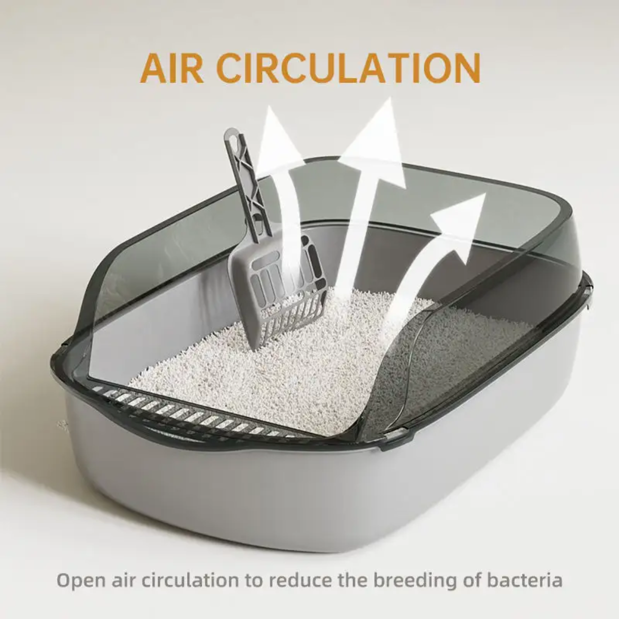 The Petovia Thickened Semi-Enclosed Cat Litter Box is engineered for both convenience and performance. The reinforced walls maintain shape under use, and the high splash-proof rim provides extra protection against litter kick-out and urine overspray. The semi-enclosed hood grants your cat privacy without sacrificing ventilation or easy access, while the included scoop attaches neatly to the rim for tidy storage.