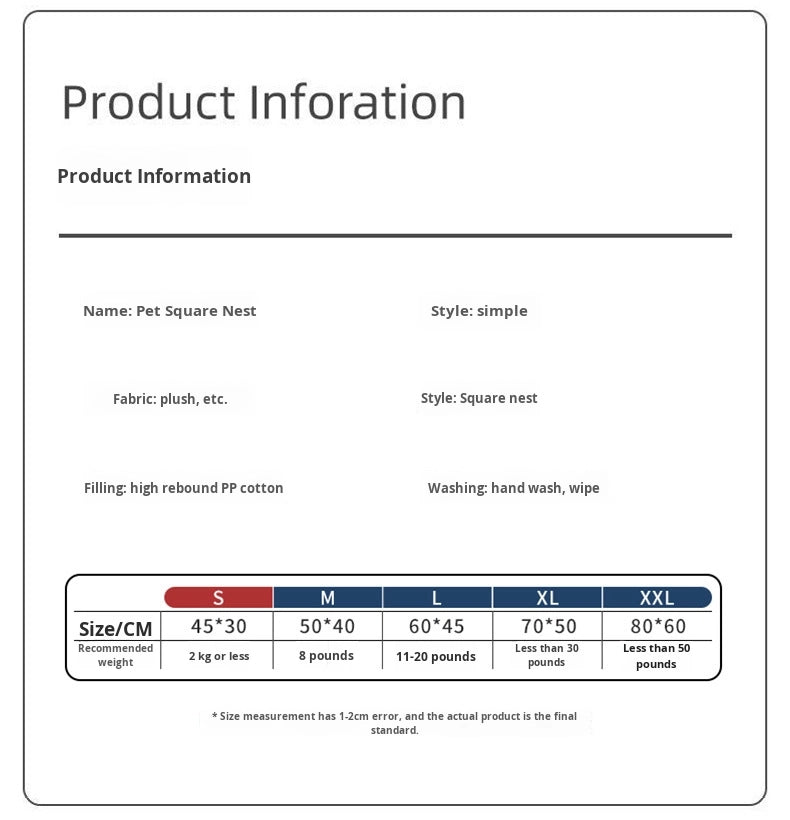 Petovia Four-Season Plush Square Dog Bed for Large Dogs
